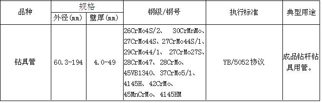 用于制造成品钻杆钻具,主要作用:一是传递转矩;二是上部钻具承受钻柱本身一部分重量,下部钻具给钻头造成破碎井底岩石的压力;三是输送洗井液,即钻井泥 浆通过地面的高压泥浆泵,打入水龙头进入钻柱内孔流入井底冲刷岩屑,冷却钻头并携带岩屑经过钻柱外表面与井壁之间的环形空间返回到地表,使井底不断加深, 直至钻到目的层。